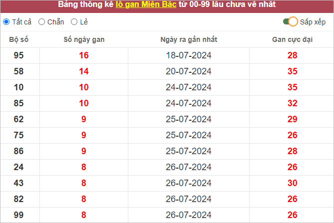 ⭐️ Lô gan XSMB lâu ra nhất: 95 – 58 – 10 – 85 – 62