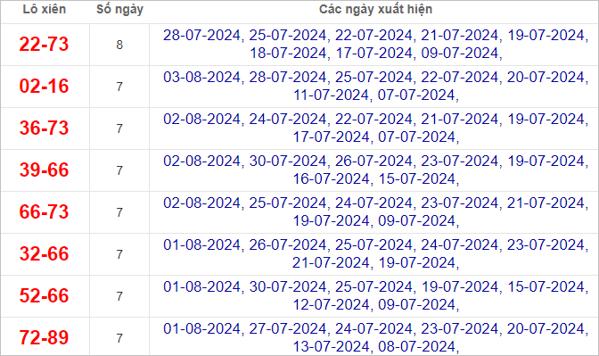 Cầu lô chạy 5 ngày qua (cầu dài nhất)
