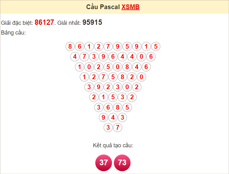 Kết quả từ soi cầu Pascale là cặp số may mắn: 37 73