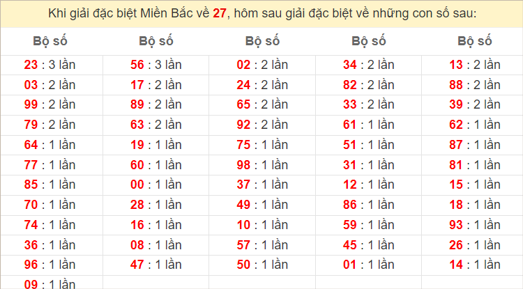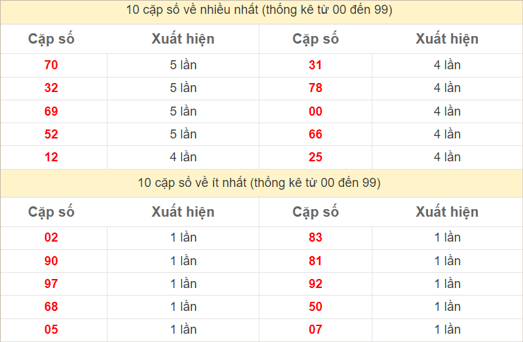 Thống kê hai số cuối giải đặc biệt miền Bắc ngày 5/6