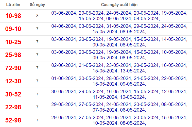 Cầu lô chạy 5 ngày qua (cầu dài nhất)