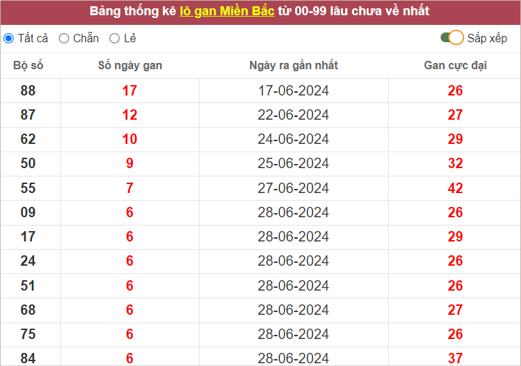 ⭐️Thống kê lô gan XSMB lâu ra nhất: 88 – 87 – 62 – 50 – 55
