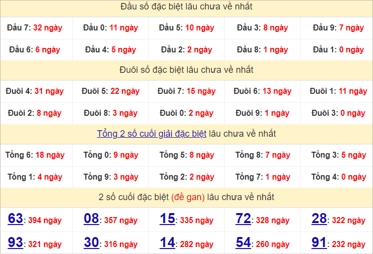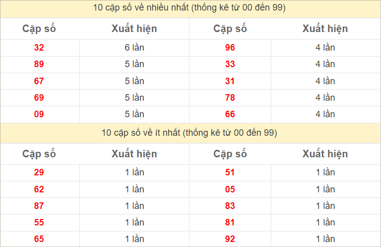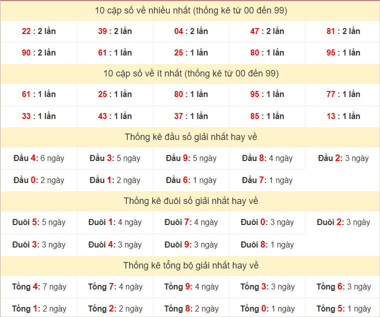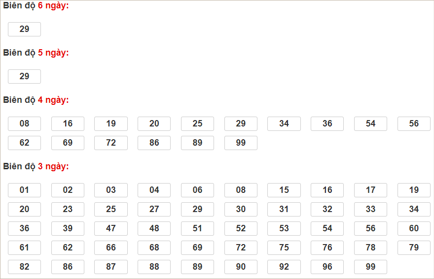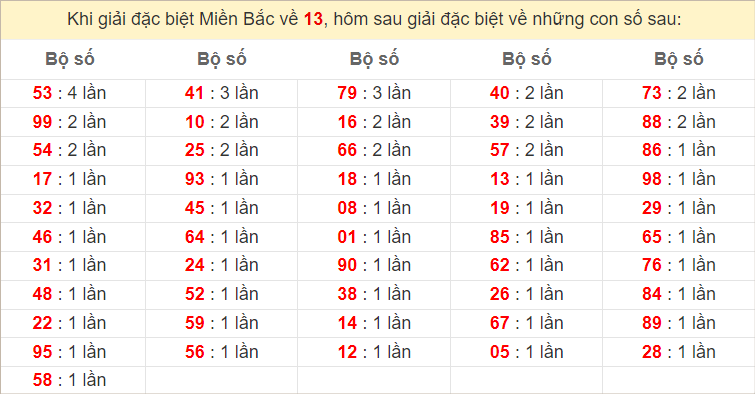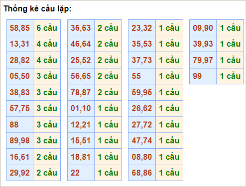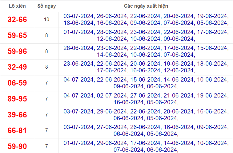 Cặp lô 03, 39, 48, 53, 79 có độ dài 3 ngày.