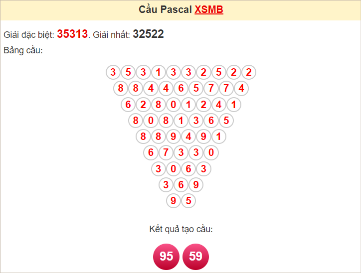 Kết quả từ soi cầu Pascale là cặp số may mắn: 95 59