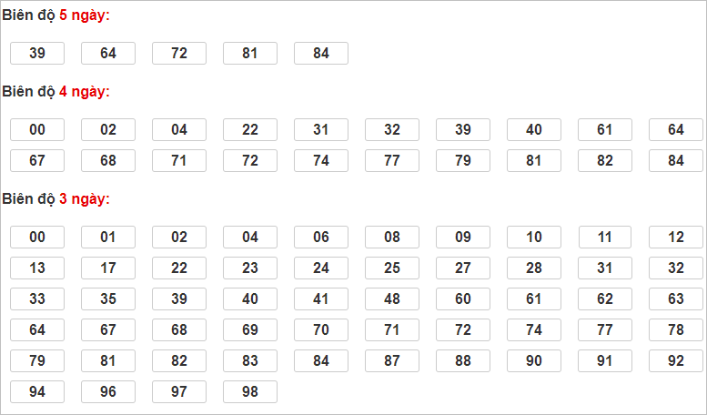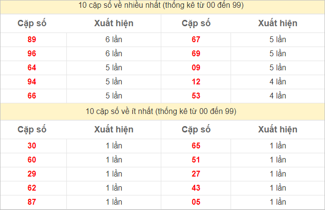 Các cặp số nóng nhất hôm nay: 72 – 89 – 95 – 67 – 40