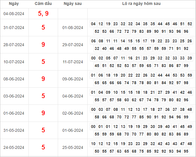 Dàn lô hôm nay miền Bắc bất bại ngày 5/8/2024