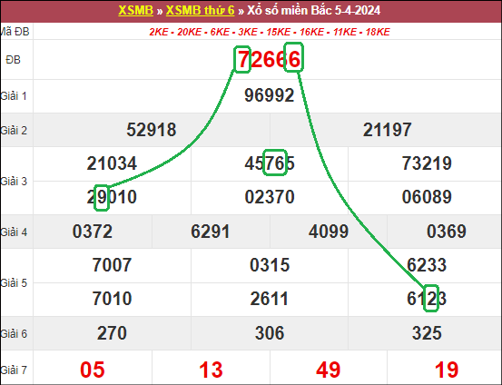 THỐNG KÊ LÔ TÔ KẾT QUẢ XSMB NGÀY 5-4-2024