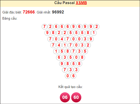 Kết quả từ soi cầu Pascale là cặp số may mắn: 06 60