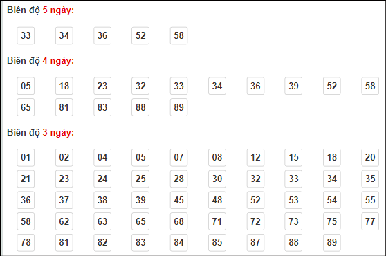 Cặp lô 08, 32, 33, 84, 88 có độ dài 3 ngày