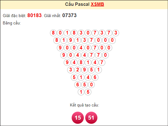 Kết quả từ soi cầu Pascale là cặp số may mắn: 15 51