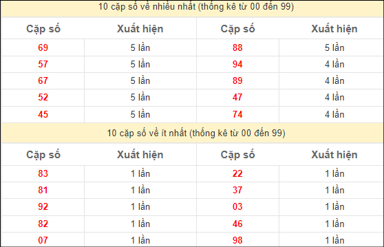 ⭐️ Thống kê tần suất lô về nhiều trong 30 ngày qua: 69 (16 lần), 22, 57, 61, 92 (15 lần), 77, 89 (14 lần), 10 (13 lần)