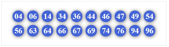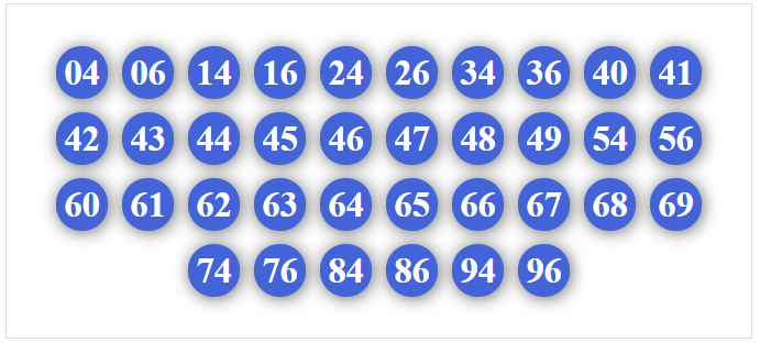00, 01, 02, 03, 04, 05, 06, 07, 08, 09, 10, 11, 12, 13, 14, 15, 16, 17, 18, 19