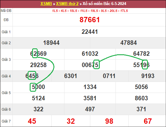 Xem lại bảng KQXSMB ngày 6/5/2024 hôm qua