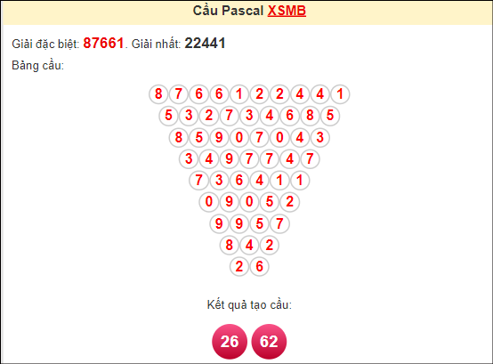 Kết quả từ soi cầu Pascale là cặp số may mắn: 26 62