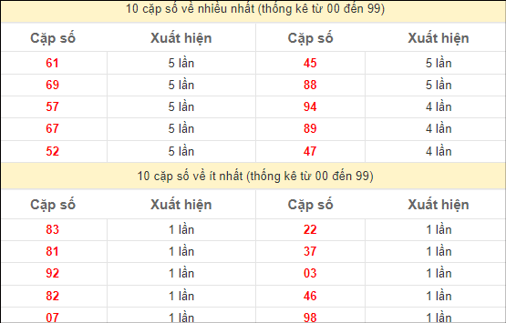 Các cặp số được chọn nhiều nhất hôm nay: 23 – 21 – 92 – 95 – 37