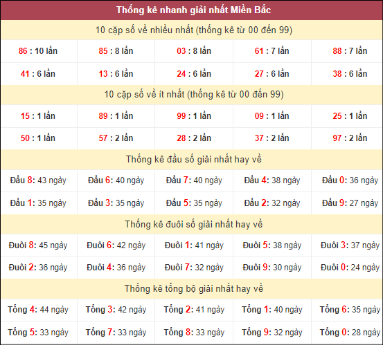 Thống kê hai số cuối giải đặc biệt miền Bắc ngày 7/5