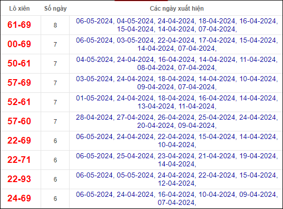 Dàn lô hôm nay miền Bắc bất bại ngày 7/5/2024