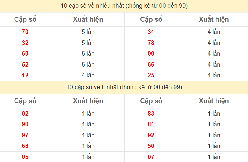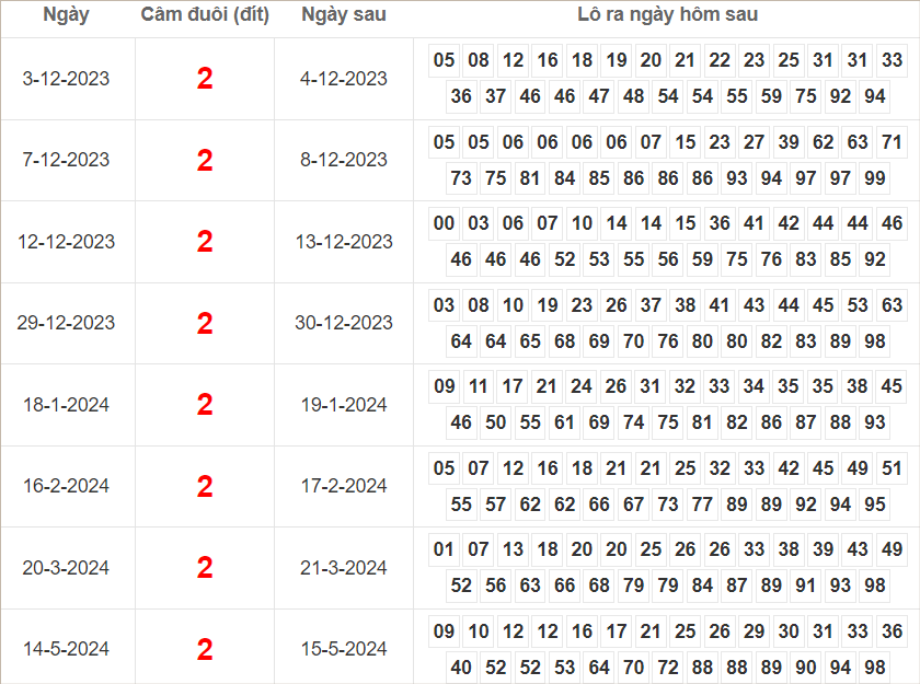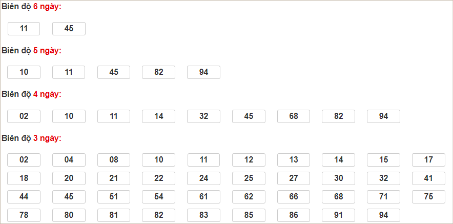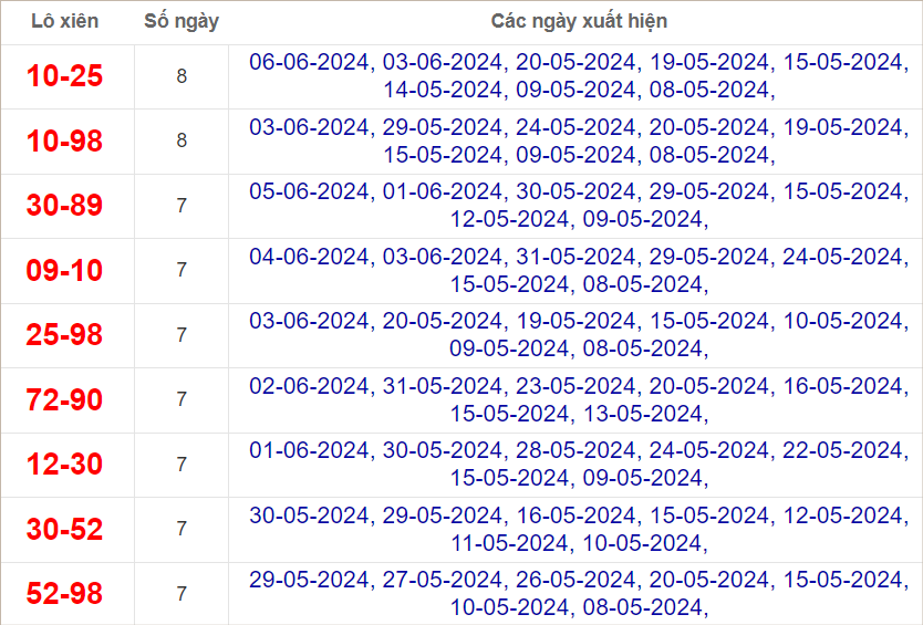 Cặp lô 02, 30, 40, 41 có độ dài 3 ngày.