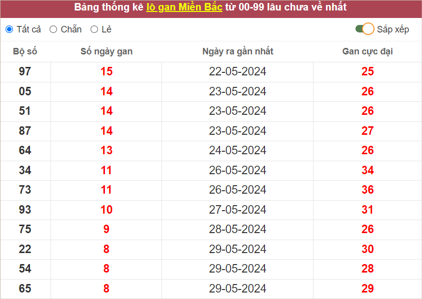 Thống kê lô tô miền Bắc hôm nay 7/6