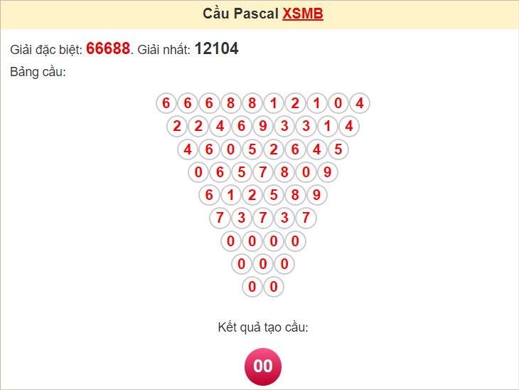 Kết quả từ soi cầu Pascale là cặp số may mắn: 00