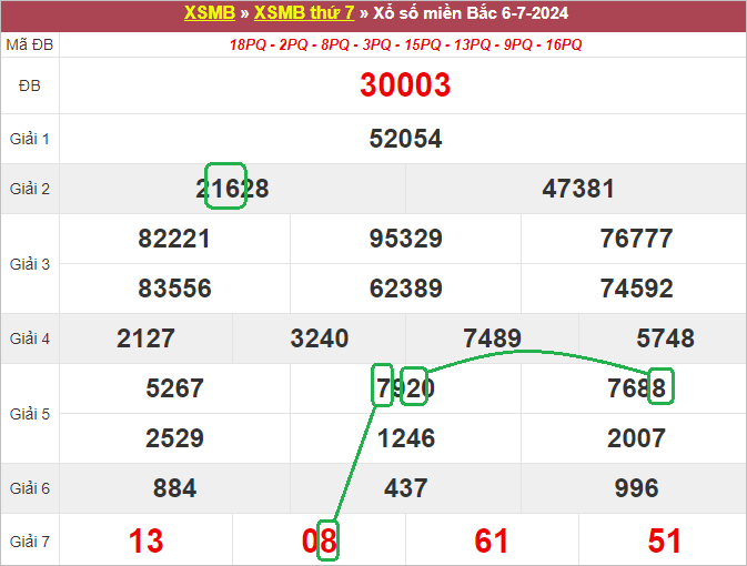 Xem lại bảng KQXSMB ngày 6-7-2024 hôm qua