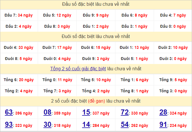 Thống kê hai số cuối giải đặc biệt miền Bắc ngày 7/7