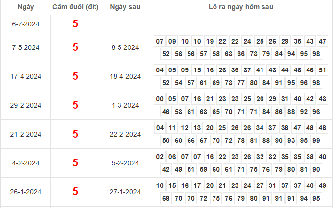 Dàn lô hôm nay miền Bắc bất bại ngày 7/7/2024