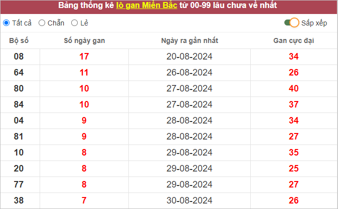 ⭐️Lô gan MB lâu ra nhất: 08 – 64 – 80 – 84 – 04