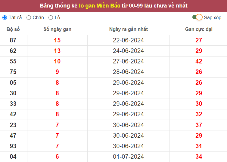 ⭐️Lô gan MB lâu ra nhất: 87 – 62 – 55 – 75 – 05