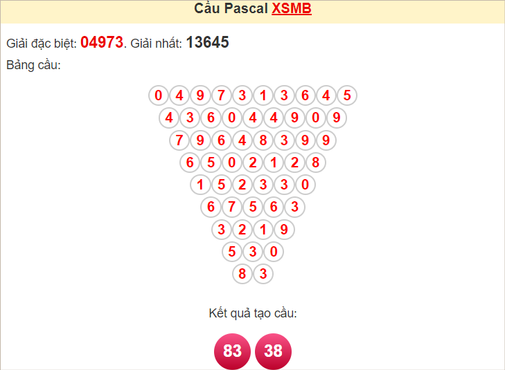 Kết quả từ soi cầu Pascale là cặp số may mắn: 83 38