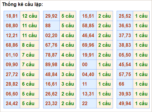 Cầu lô chạy 7 ngày qua (cầu dài nhất)
