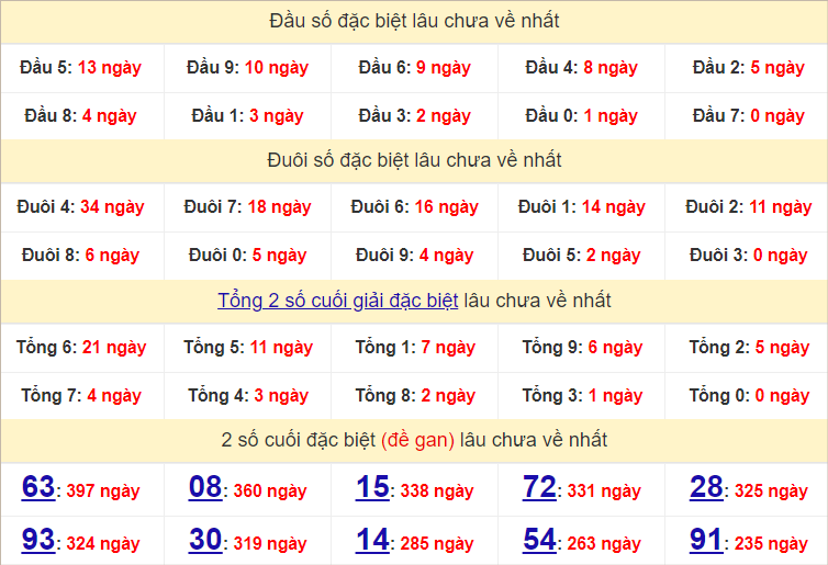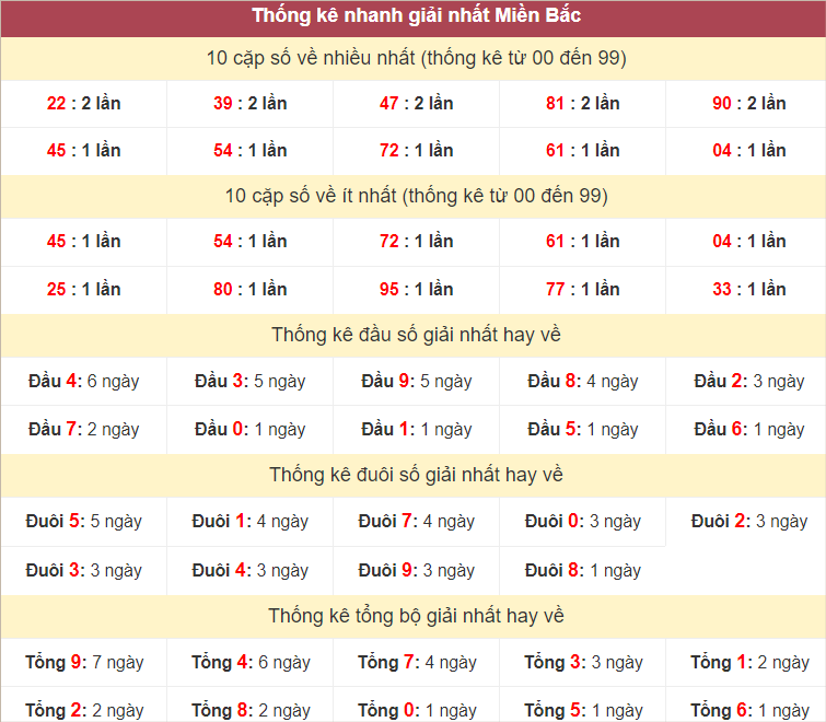 Thống kê hai số cuối giải đặc biệt miền Bắc ngày 8/7