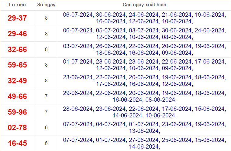 Dàn lô hôm nay miền Bắc bất bại ngày 8/7/2024