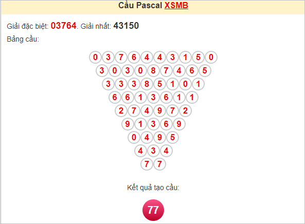 Kết quả từ soi cầu Pascale là cặp số may mắn: 77