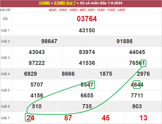 Xem lại bảng KQXSMB ngày 7-9-2024 hôm qua