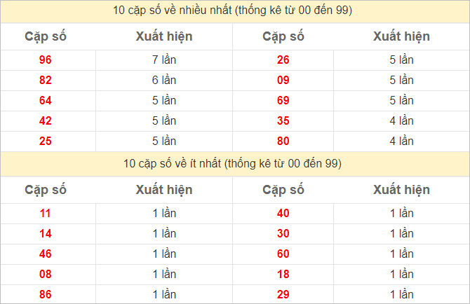 Thống kê hai số cuối giải đặc biệt miền Bắc ngày 8/9