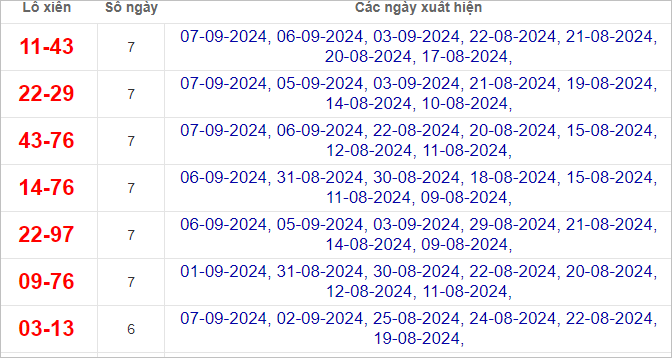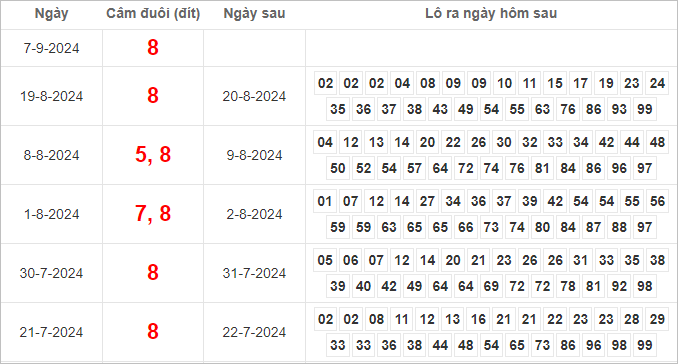 Dàn lô hôm nay miền Bắc bất bại ngày 8/9/2024