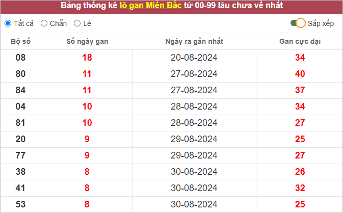 Thống kê lô tô miền Bắc hôm nay 8/9
