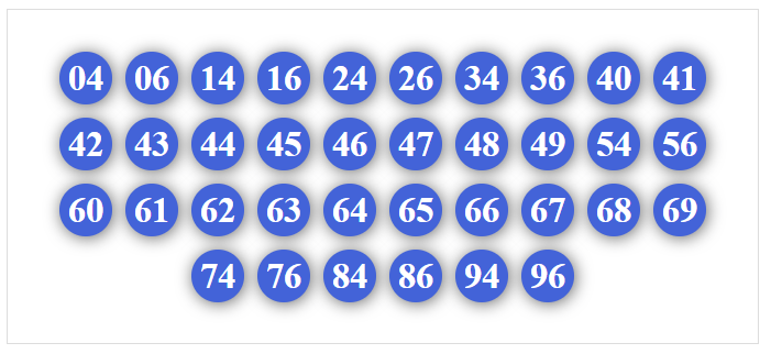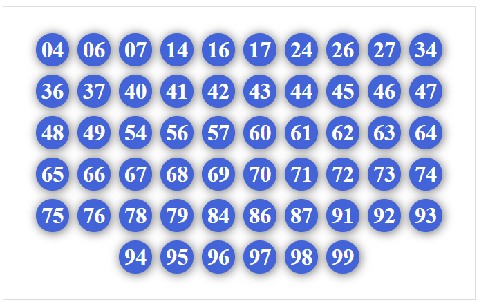 00, 01, 02, 03, 04, 05, 06, 07, 08, 09, 70, 71, 72, 73, 74, 75, 76, 77, 78, 79