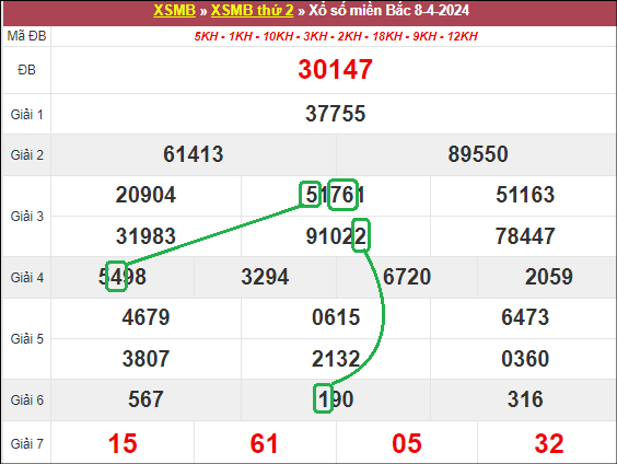 Xem lại bảng KQXSMB ngày 8/4/2024 hôm qua