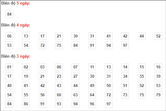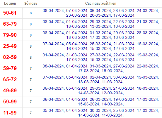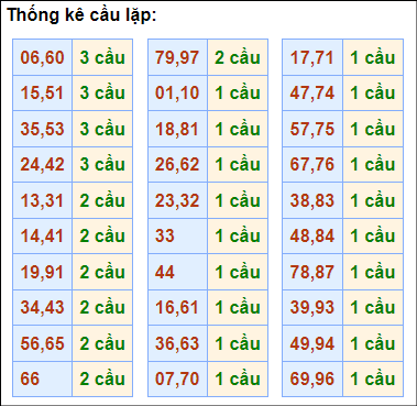 Cặp lô 02, 46, 52, 84, 93 có độ dài 3 ngày.