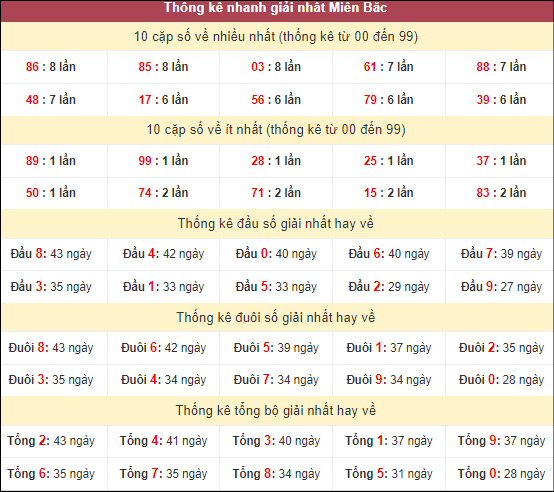 Thống kê lô tô miền Bắc hôm nay 9/4