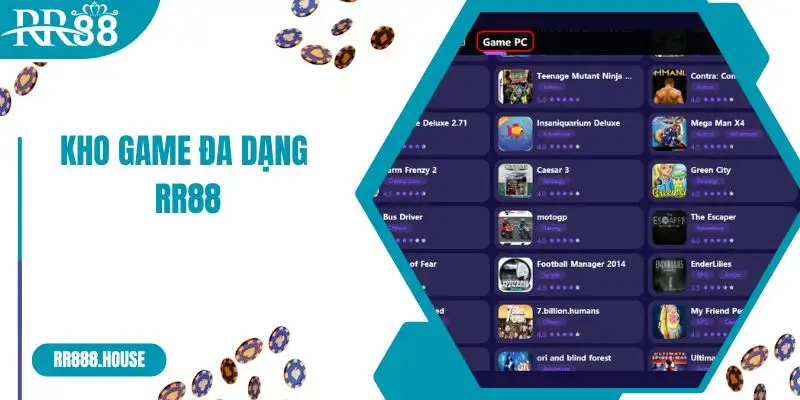 Hiện tại, nhà cái RR88 mang đến cho thành viên của mình kho game vô cùng đa dạng, phong phú và ấn tượng. Bao gồm: